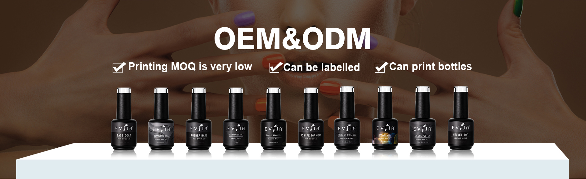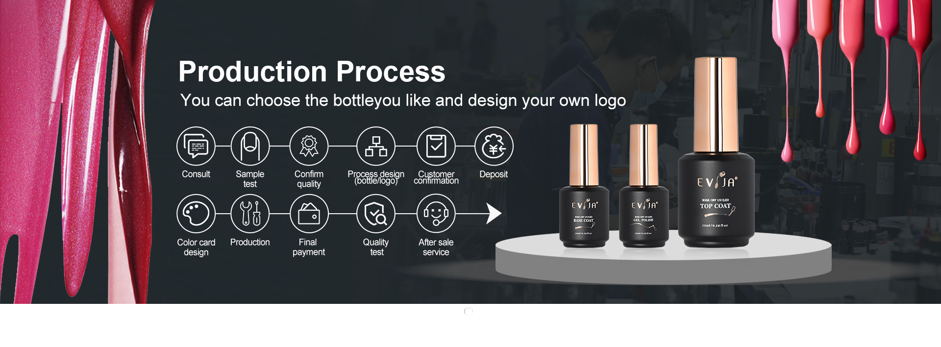 Evija is specializing in producing high-quality &healthy UV GEL products.Our main goal is to provide one -step OEM and ODM service for major brands ,and we also focus on our own brand:EVIJA.Over the years ,we have been committed to the development and sales of UV gel,we have an independent production workshop and a professional sales team.Our main products are including: primer, topcoat, thousand-color glue, functional glue and various special glues, cat's eye glue and so on.We support LOW MOQ customization,kilo export of raw materials,support color matching and sample drawings.we will, as always, provide the best service to every customer with the best quality and the best price, looking forward to cooperating with you.